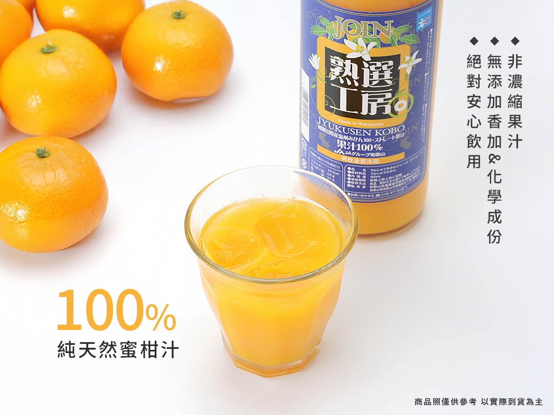 100% 和歌山縣產完熟蜜柑原汁,不添加任何化學添加物與香料