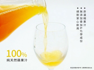非濃縮還原,不加一滴水且未經過濾的100%純蘋果汁。